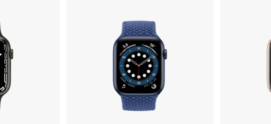 Як видно, годинник за своїм зовнішнім оформленням не дуже різний. Єдине, що одна модель представлена лише трьома колірними рішеннями, тоді як серед двох інших вибір явно більший. Якщо віддавати перевагу незвичайному оформленню, то на себе звертають увагу синій смарт-годинник Apple Watch Series 6 і аналогічний їм за кольором удосконалений годинник нового типу (зелений теж буде хорошим варіантом).